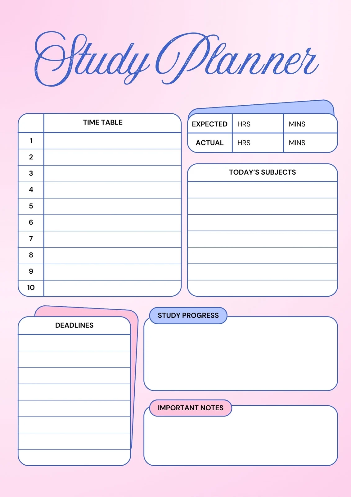 With colorful designs and plenty of space to write, our printable planner is both functional and fun. You can customize it to suit your needs and personalize it with stickers, doodles, or motivational quotes. Make planning your study sessions a creative and enjoyable experience!
