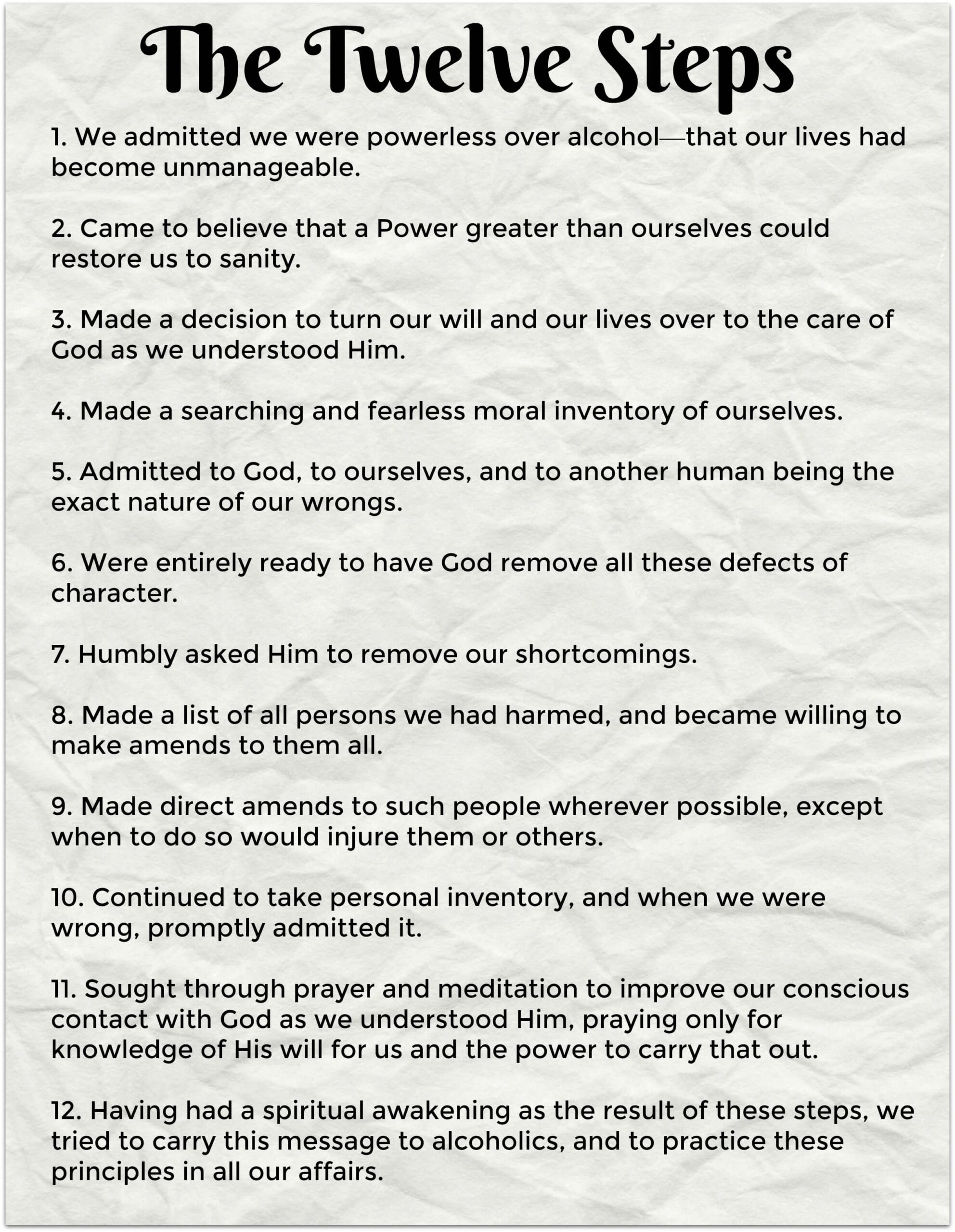 Whether you’re new to the program or have been in recovery for years, having a physical copy of the 12 Steps can be a great resource. You can easily refer to it whenever you need a reminder of the principles that guide the program and keep you on the path to sobriety.