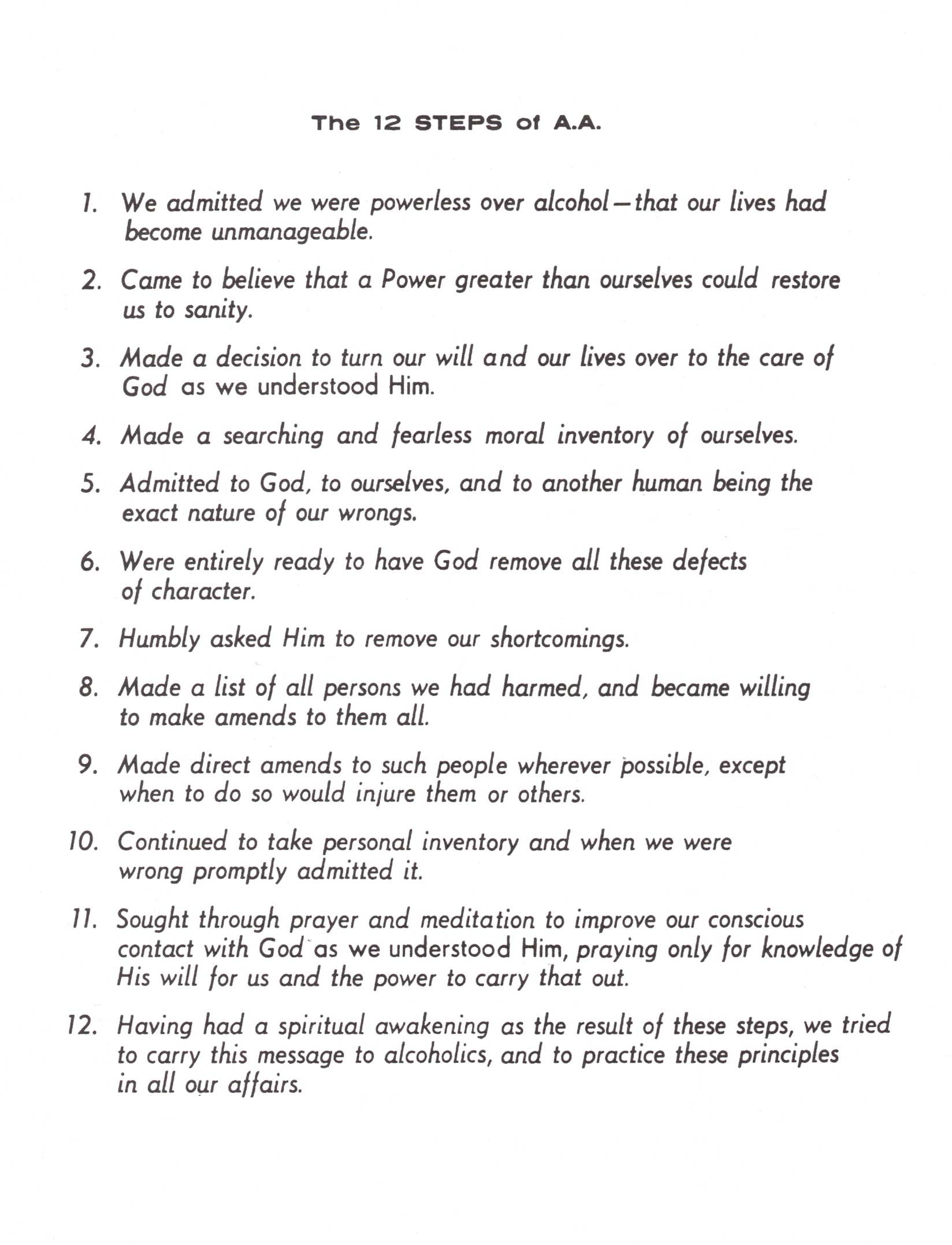 Aa 12 Steps List Printable