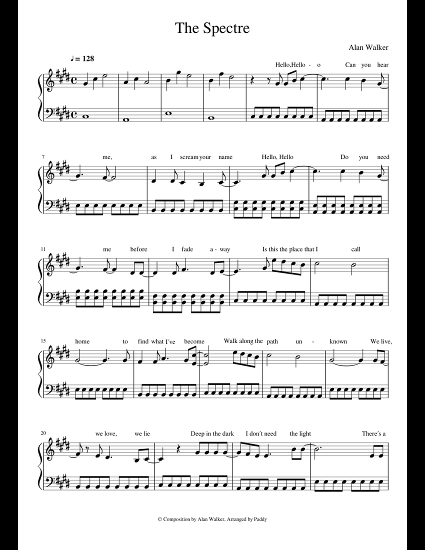 Alan Walker The Spectre piano Sheet Music For Piano Solo