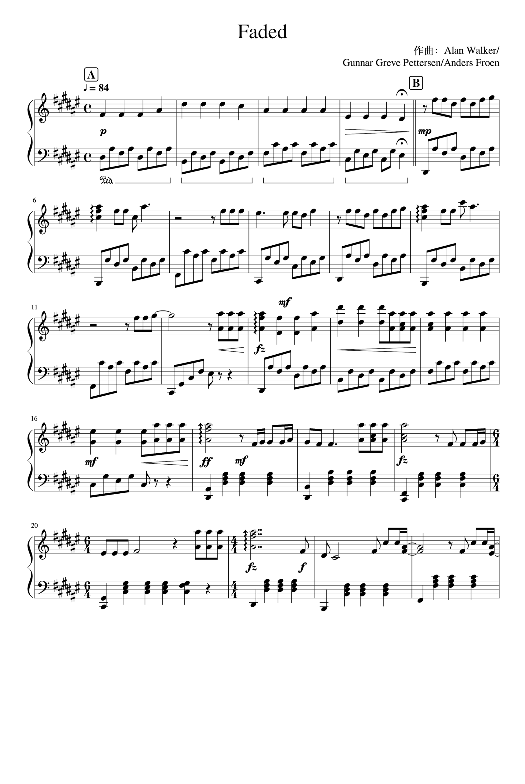 Alan Walker Fade Clear Liu Piano Cover PDF