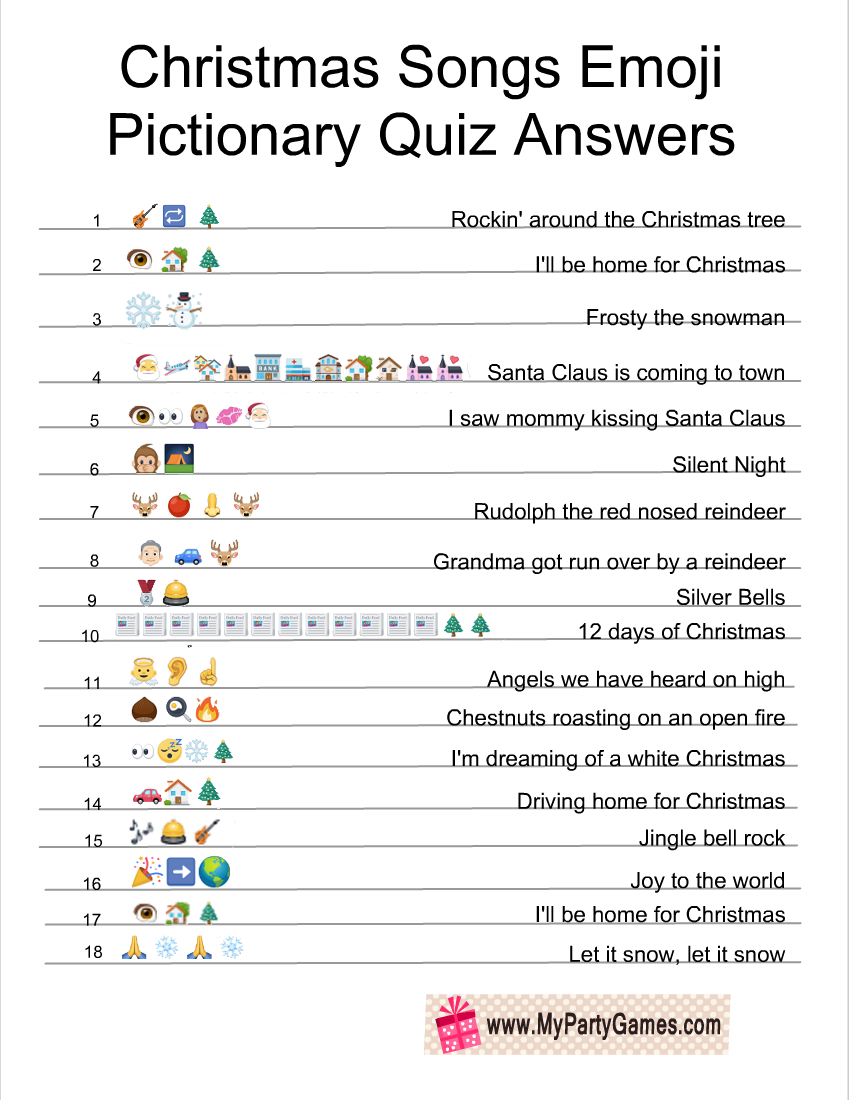 Answers Christmas Song Emoji Quiz Printable