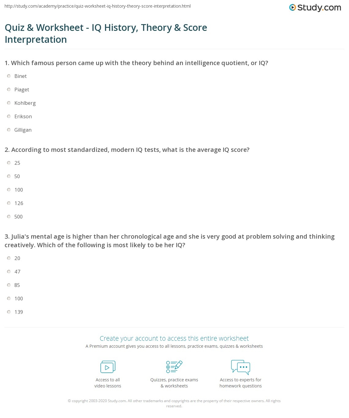 Quiz amp Worksheet IQ History Theory amp Score Interpretation