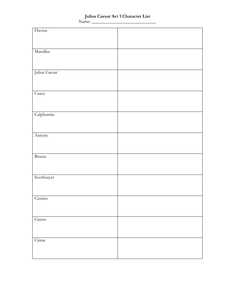 Julius Caesar Act 1 Character Chart Template Download Printable PDF Templateroller