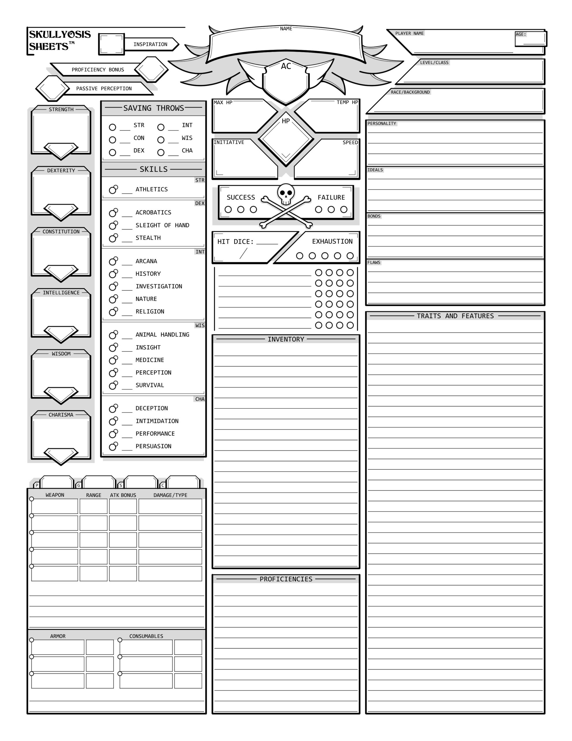 Custom Printable amp Fillable DnD 5e Character Sheet 5 Variants And