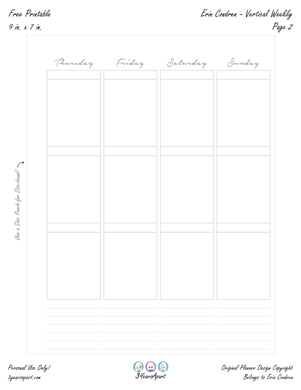 Free Planner Printable Vertical Weekly Inserts Ring Discbound