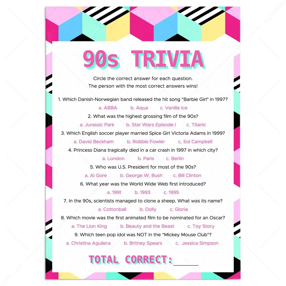 Whether you’re hosting a 90s-themed party or just looking for a fun activity to do with friends, our free printable 90s trivia is perfect for any occasion. Simply download, print, and get ready to test your knowledge of all things 90s!
