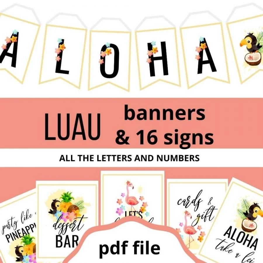 Luau Dessert Table Sign Tropical Tiki Party Decor PDF JPEG Etsy