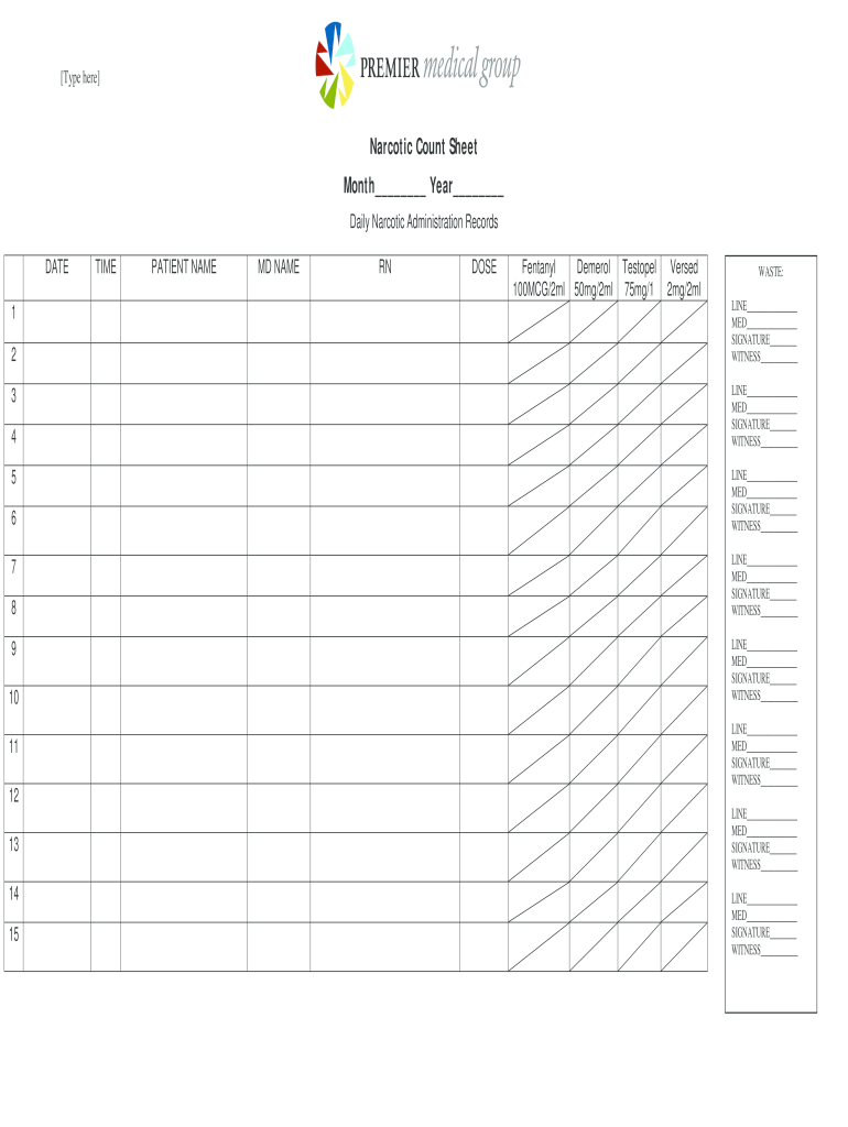 Premier Medical Group Narcotic Count Sheet Form Fill Online