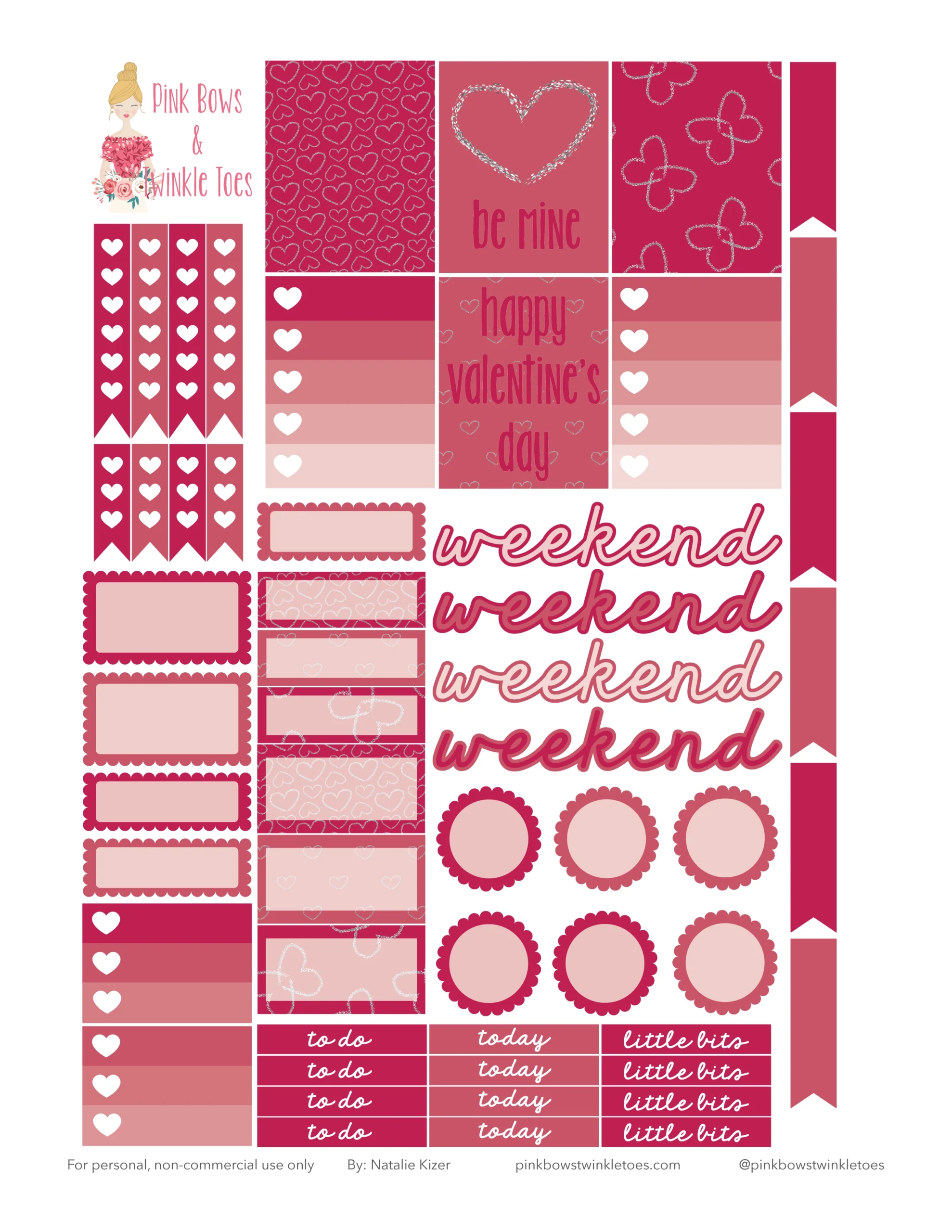 February Functional Planner Stickers Free Printable Pink Bows Twinkle Toes