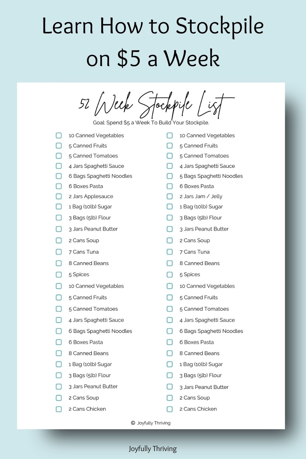 52 Week Food Stockpile Checklists How To Stockpile Food For 5 A