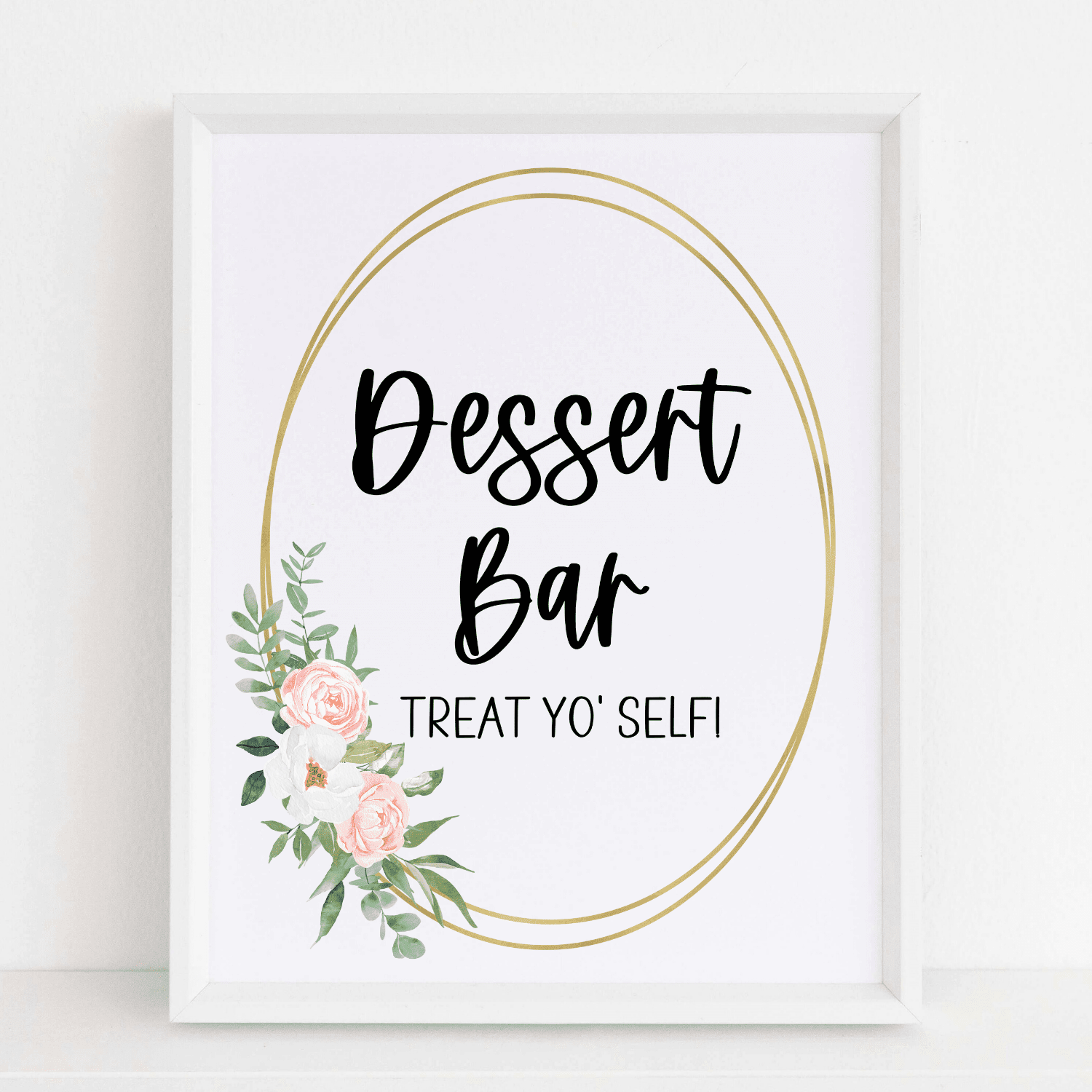 With a beautiful design featuring lush green leaves and delicate branches, this printable sign will effortlessly complement any theme or color scheme. Simply download, print, and frame it to instantly elevate your dessert display.
