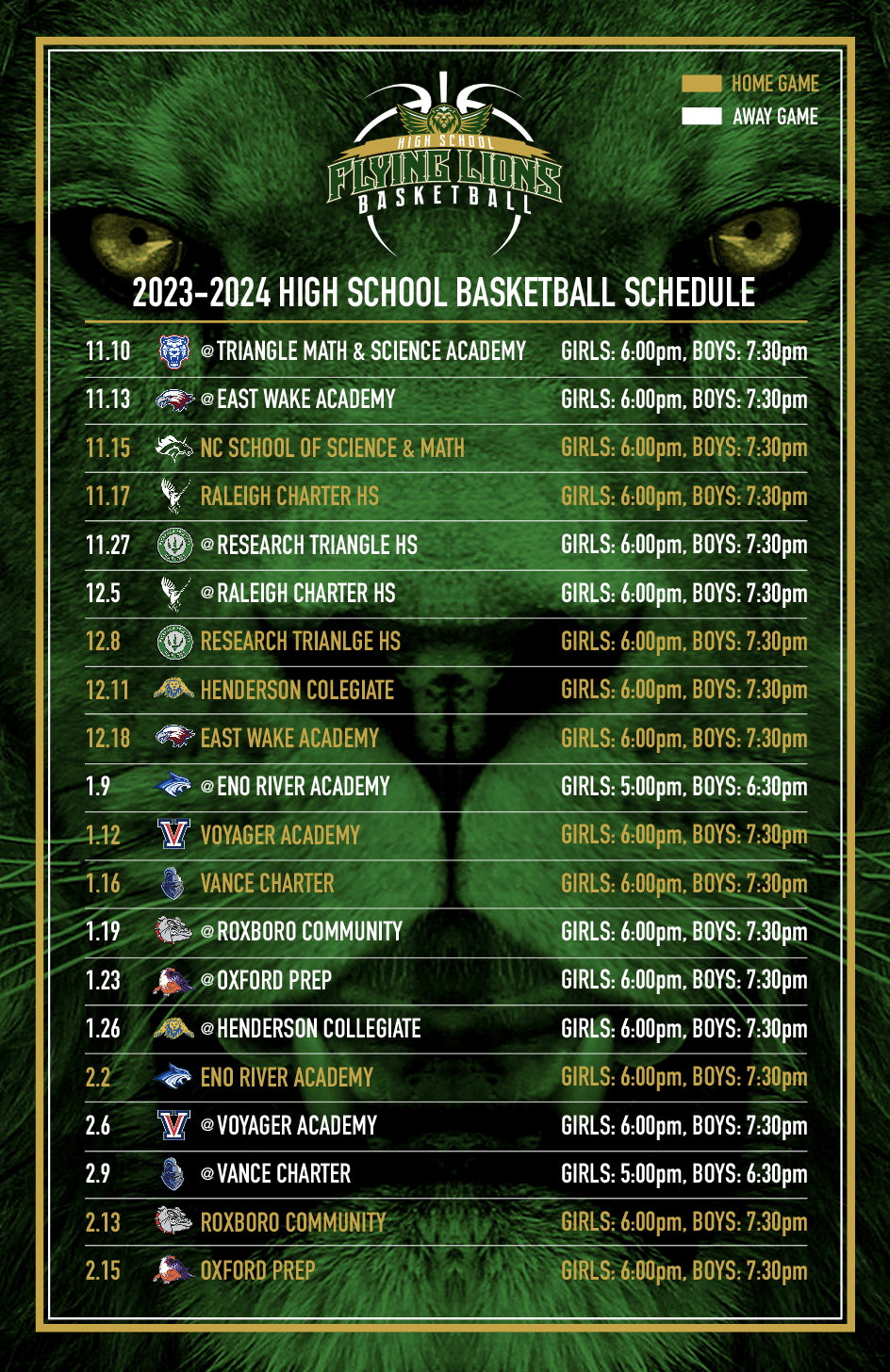 High School Basketball Printable Schedule