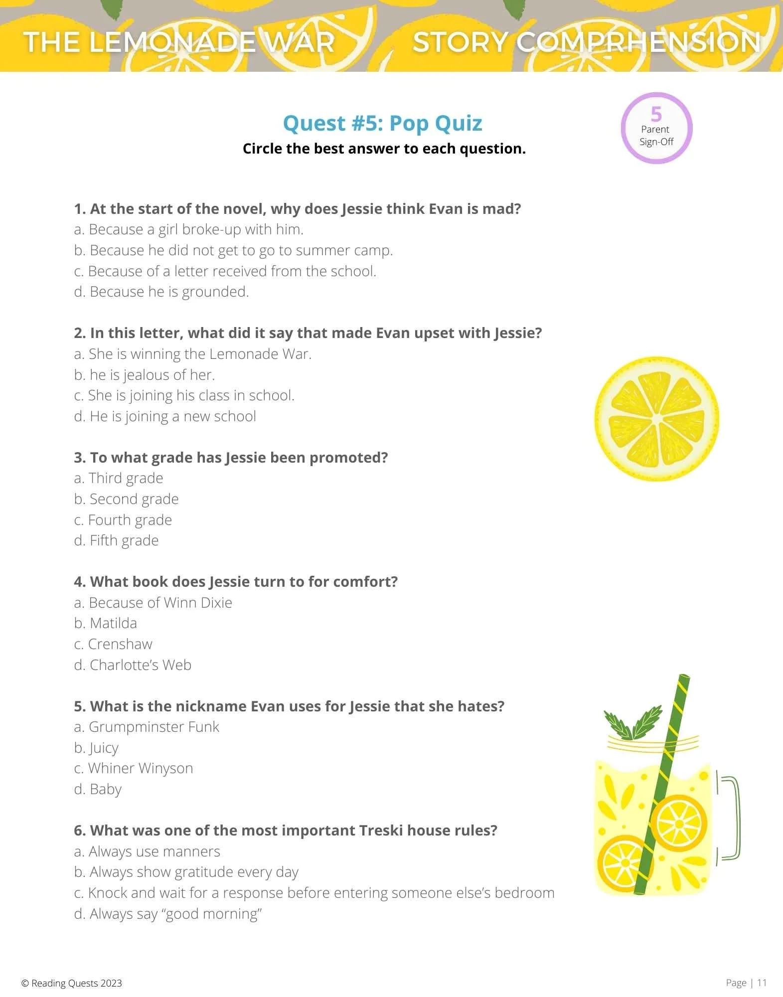 Our Lemonade War quiz printable features a variety of questions that cover key plot points, character traits, and memorable moments from the book. Whether you’re a die-hard fan or a newcomer to the story, this quiz is sure to challenge and entertain you.