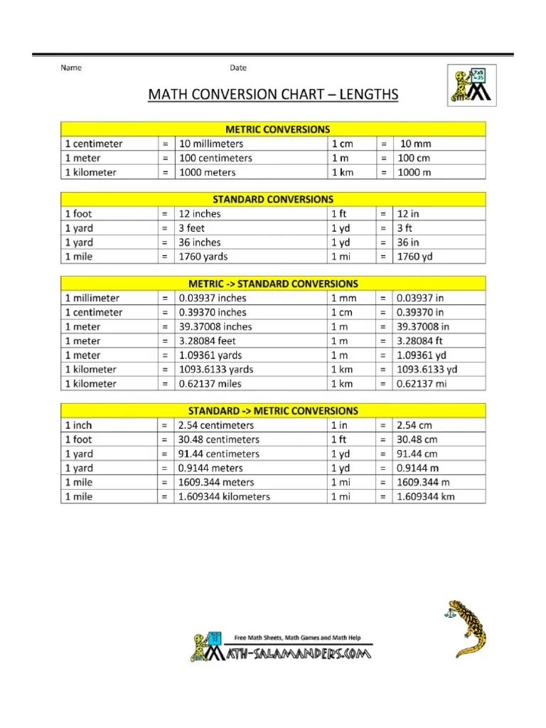Metric Conversion Chart Free Printable