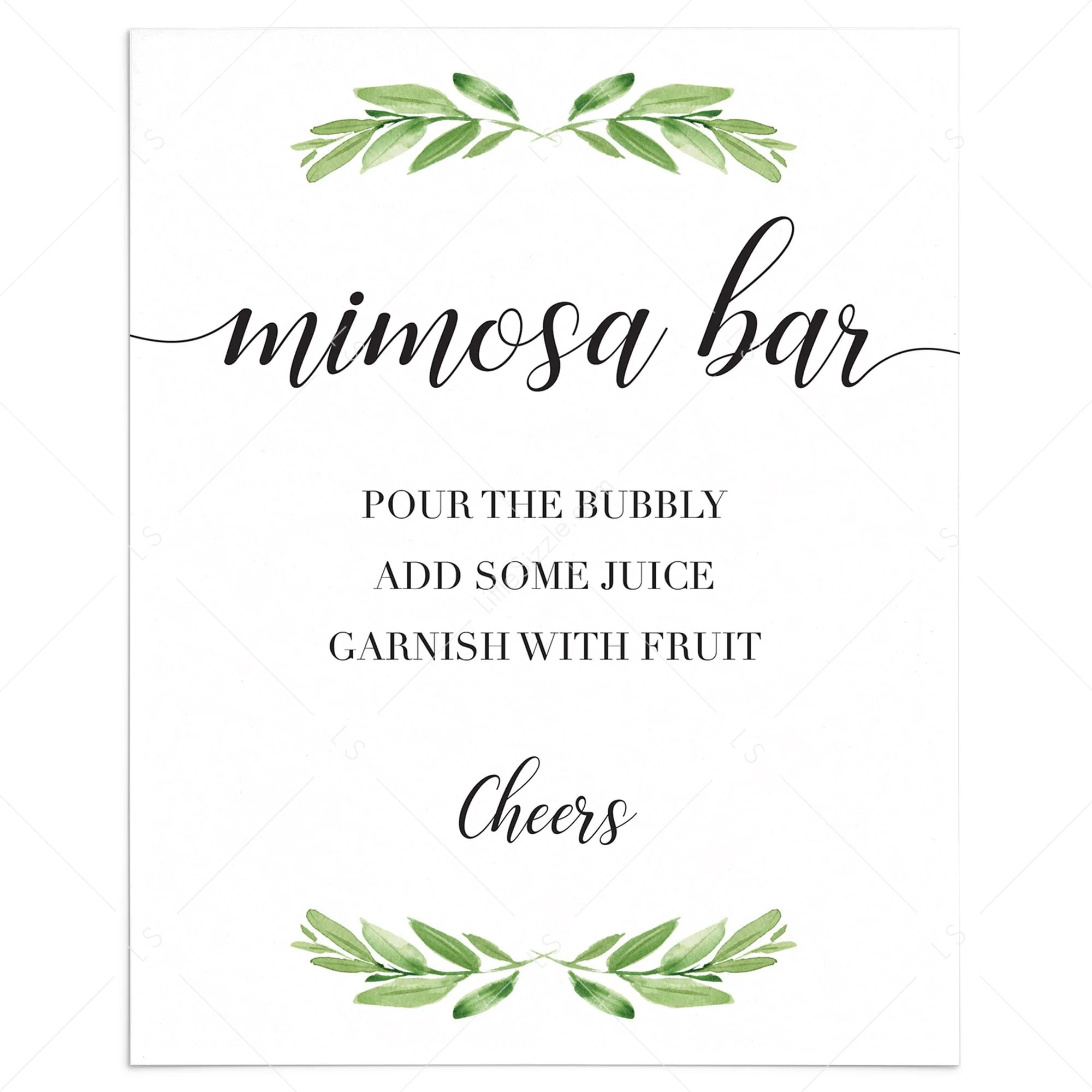 Printable Mimosa Bar Sign For Greenery Themed Shower Instant Download LittleSizzle