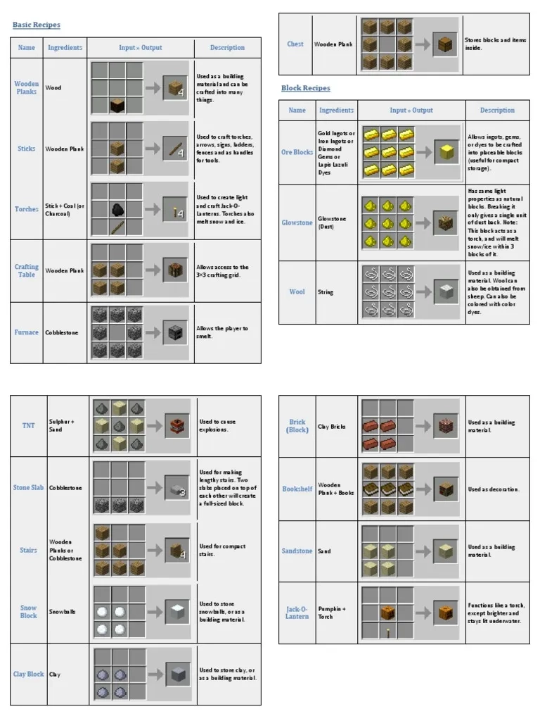 Additionally, a Printable Crafting Guide can serve as a learning tool for new players. By studying the recipes and understanding how different materials are combined to create items, you can improve your crafting skills and become a more efficient player in Minecraft.
