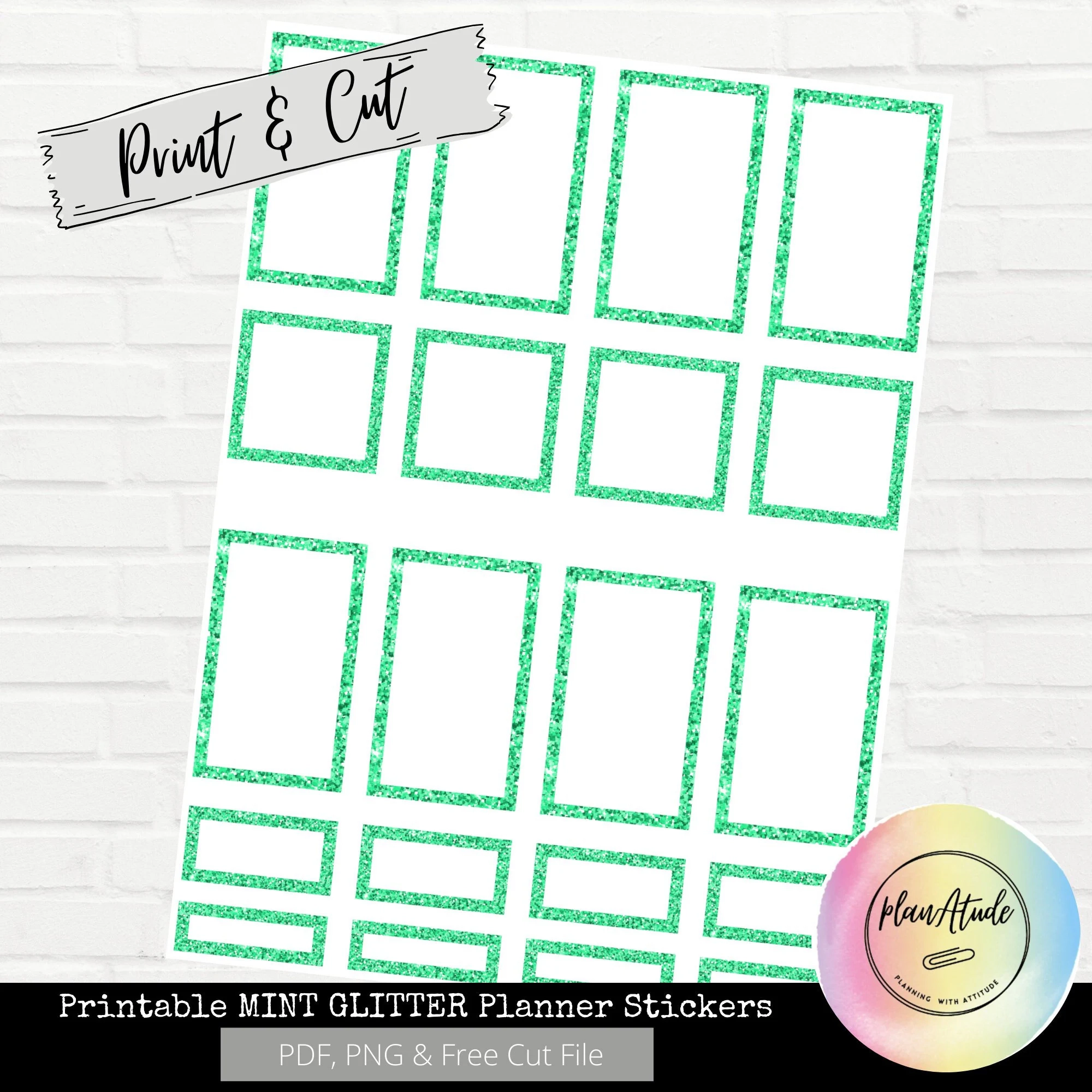 Printable Planner Box Stickers For Happy Planner Mint Glitter