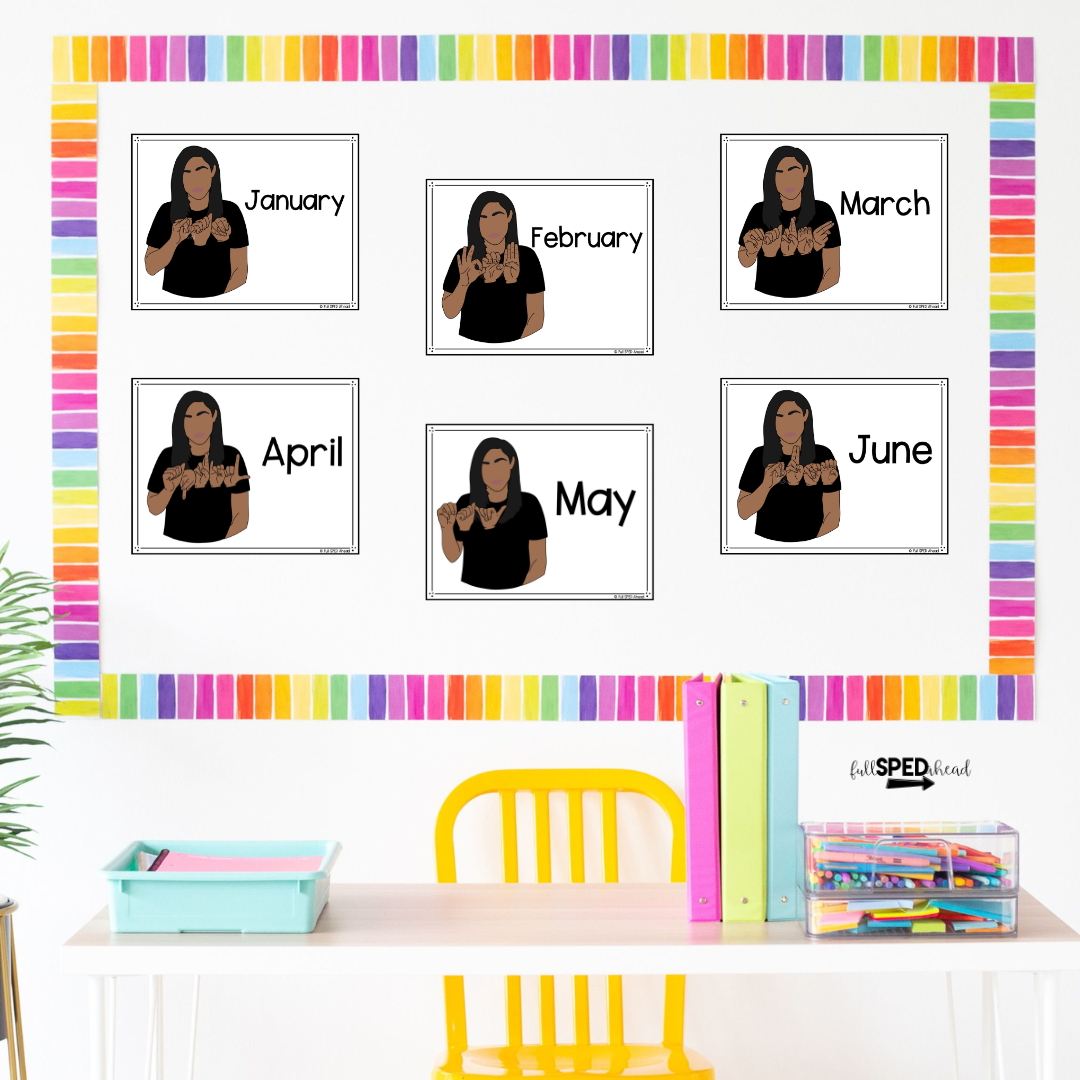 Months Words Calendar ASL Sign Language Printable Bulletin Board
