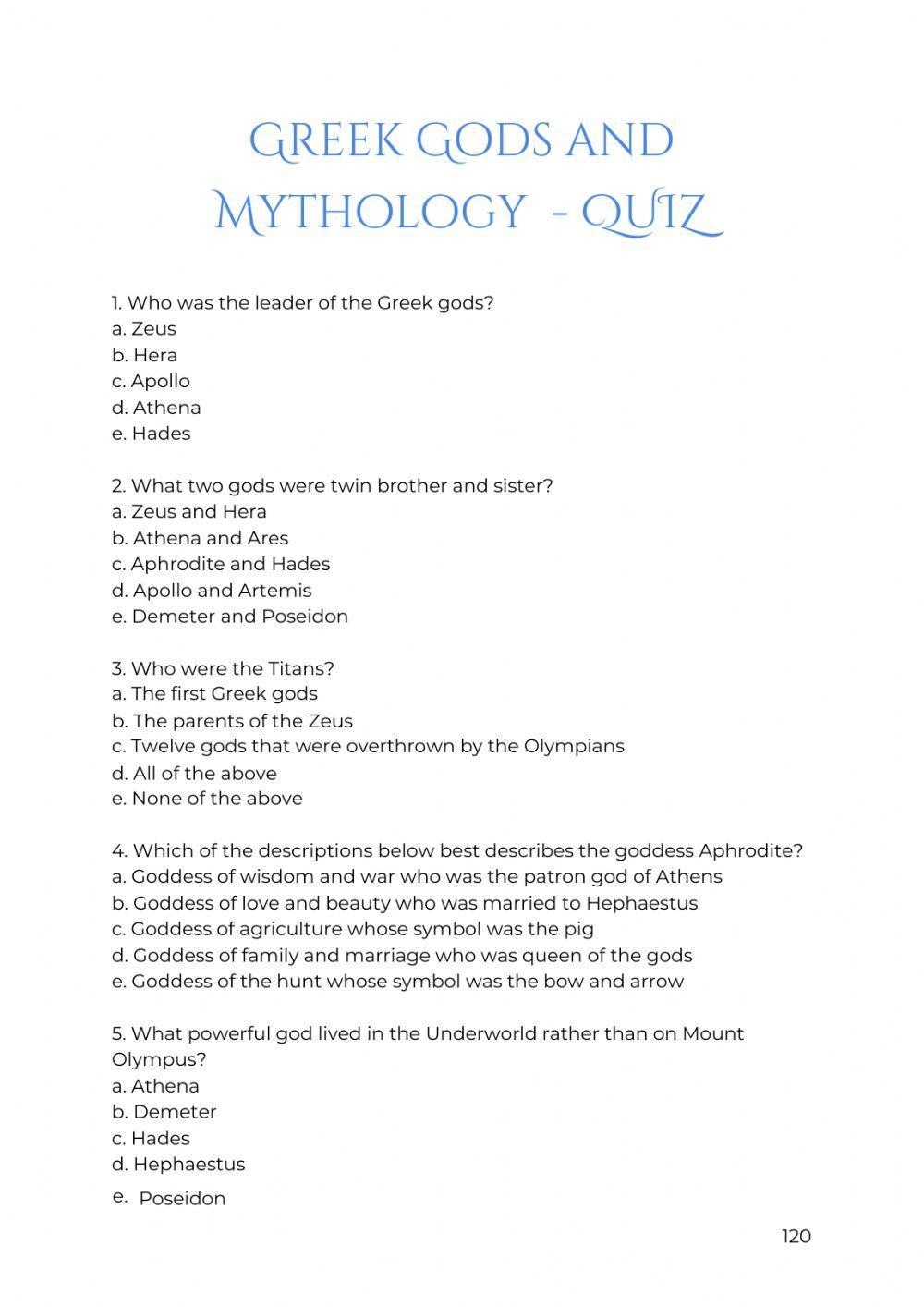 Greek Gods And Free Interactive Worksheets 4611520
