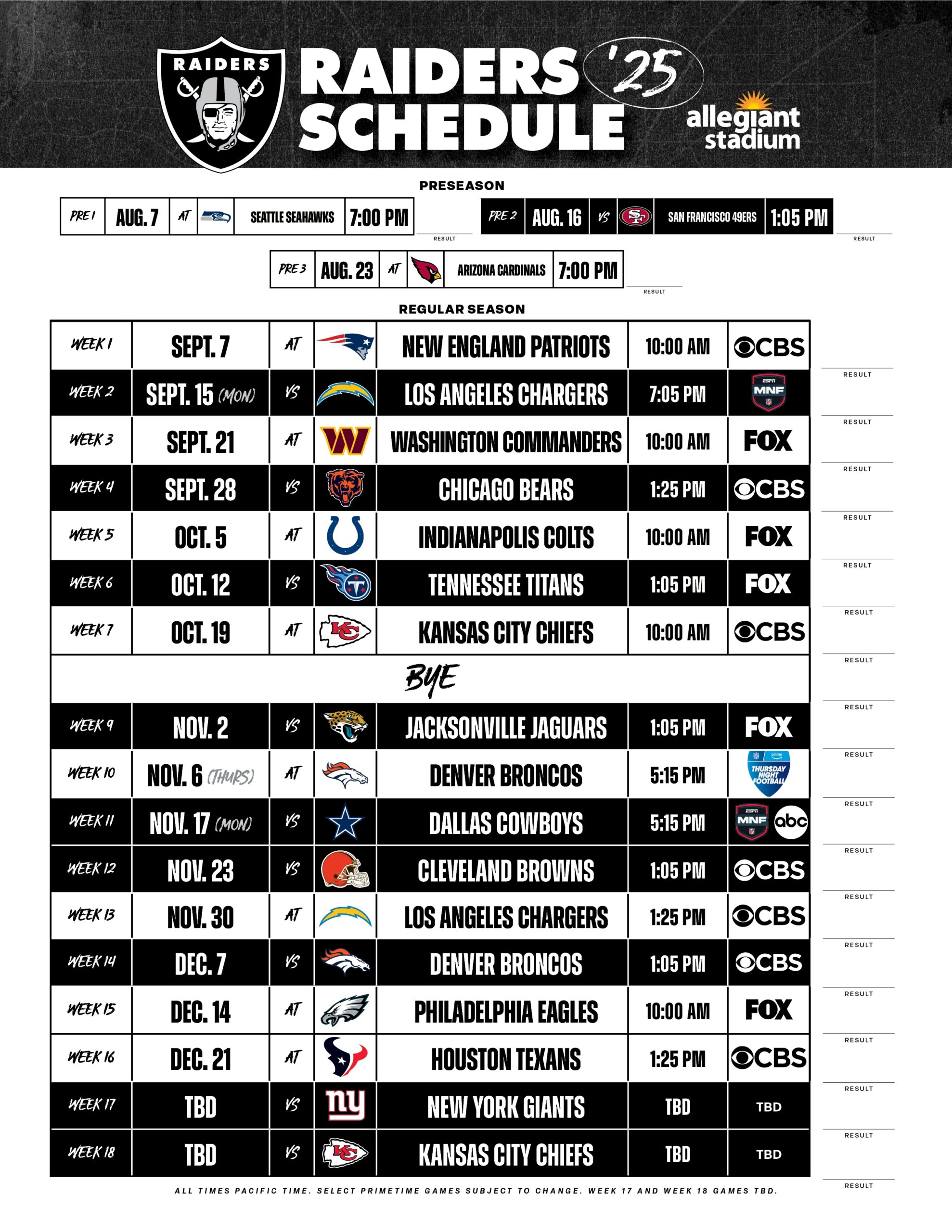 The Las Vegas Raiders 2025 Schedule NFL Schedule Release