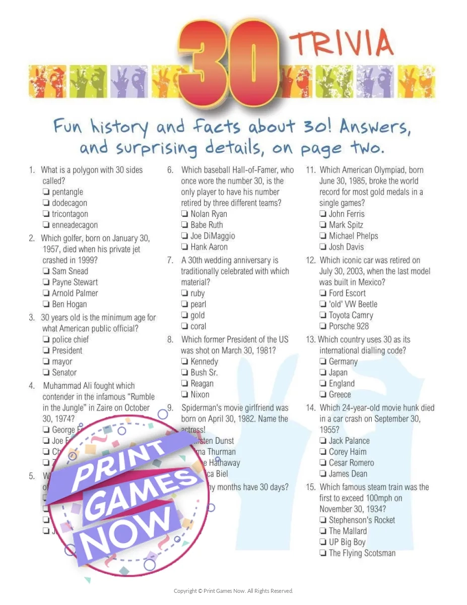 Party Trivia Questions Printable