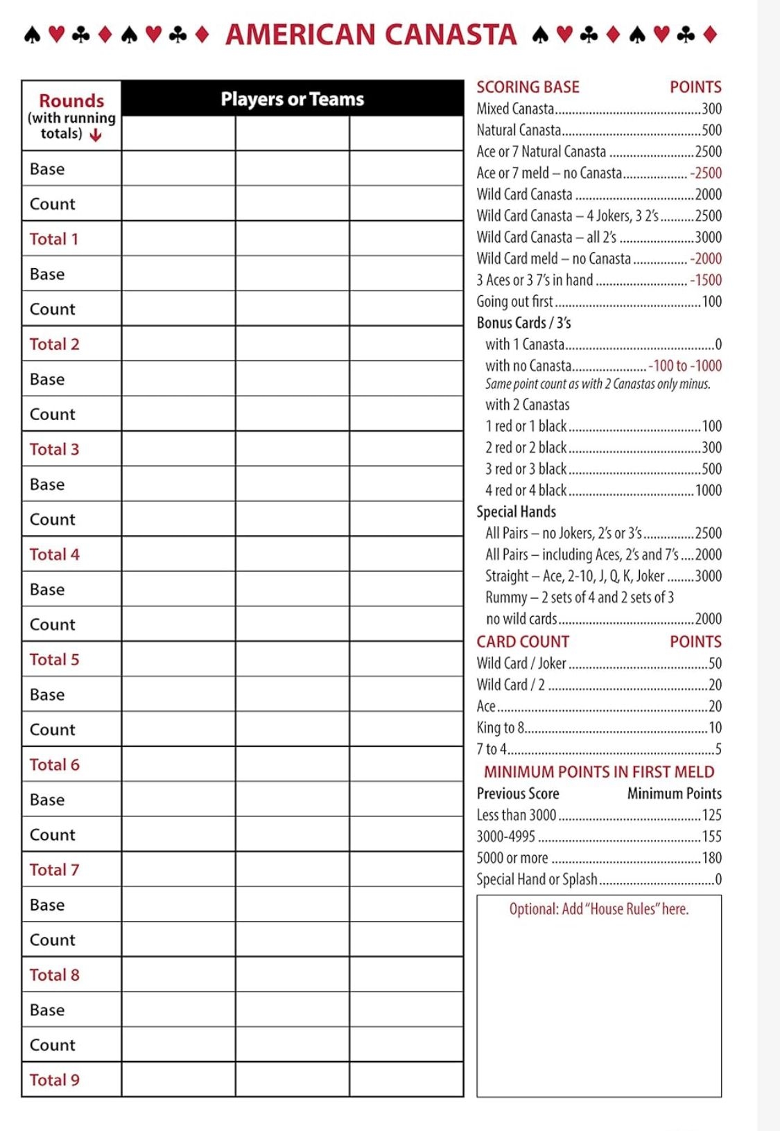 Next time you gather with friends or family for a game of American Canasta, bring along a few printed score sheets to enhance the experience. Not only will it make scorekeeping a breeze, but it will also add a touch of professionalism to your friendly matches. Happy playing!