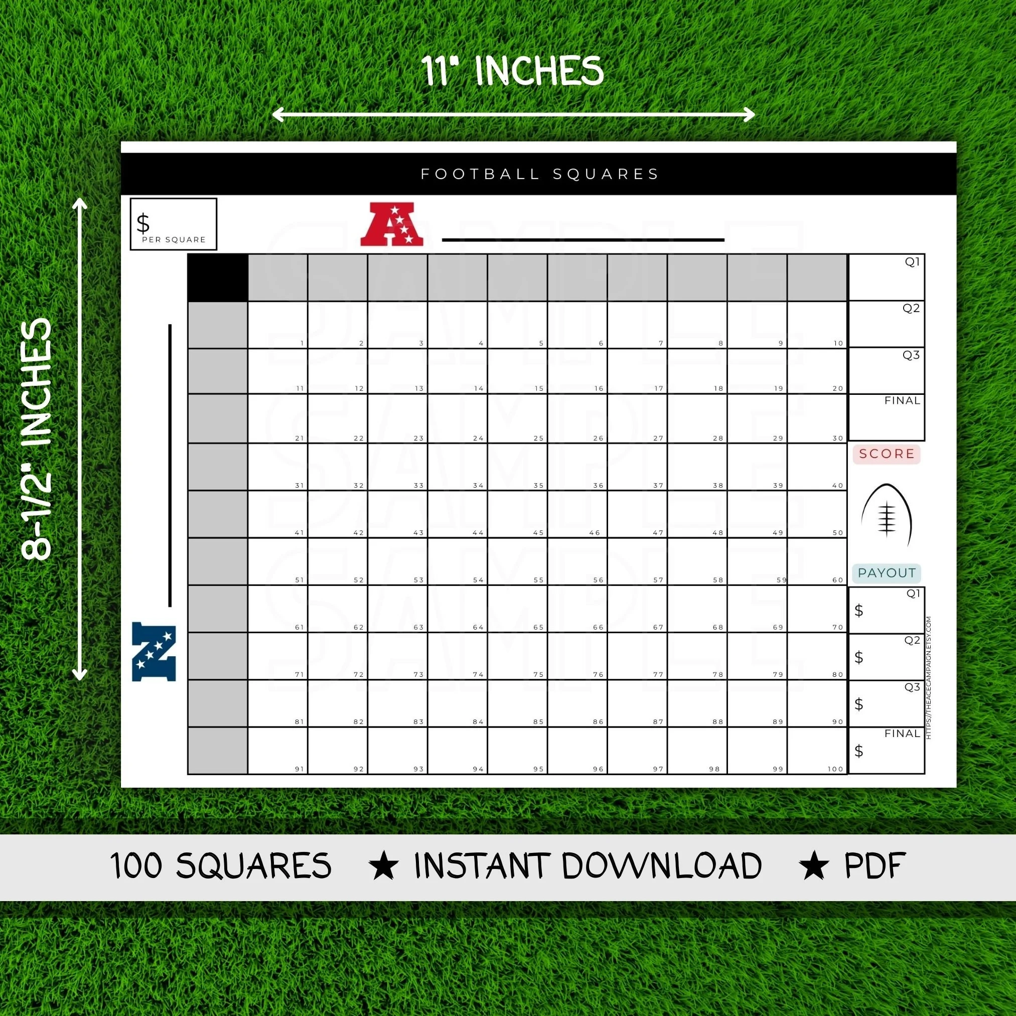 Super Bowl Squares Grid Football Pool Printable Editable PDF Etsy