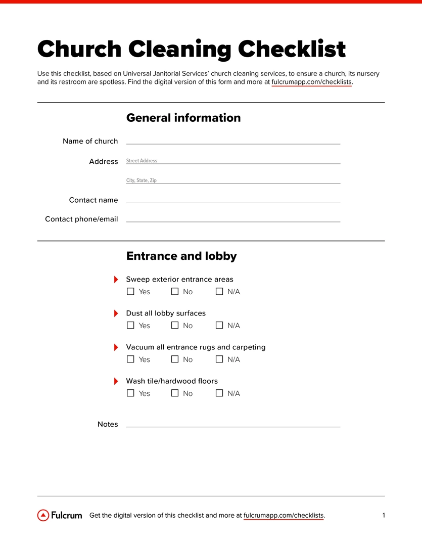Church Cleaning Checklist Fulcrum