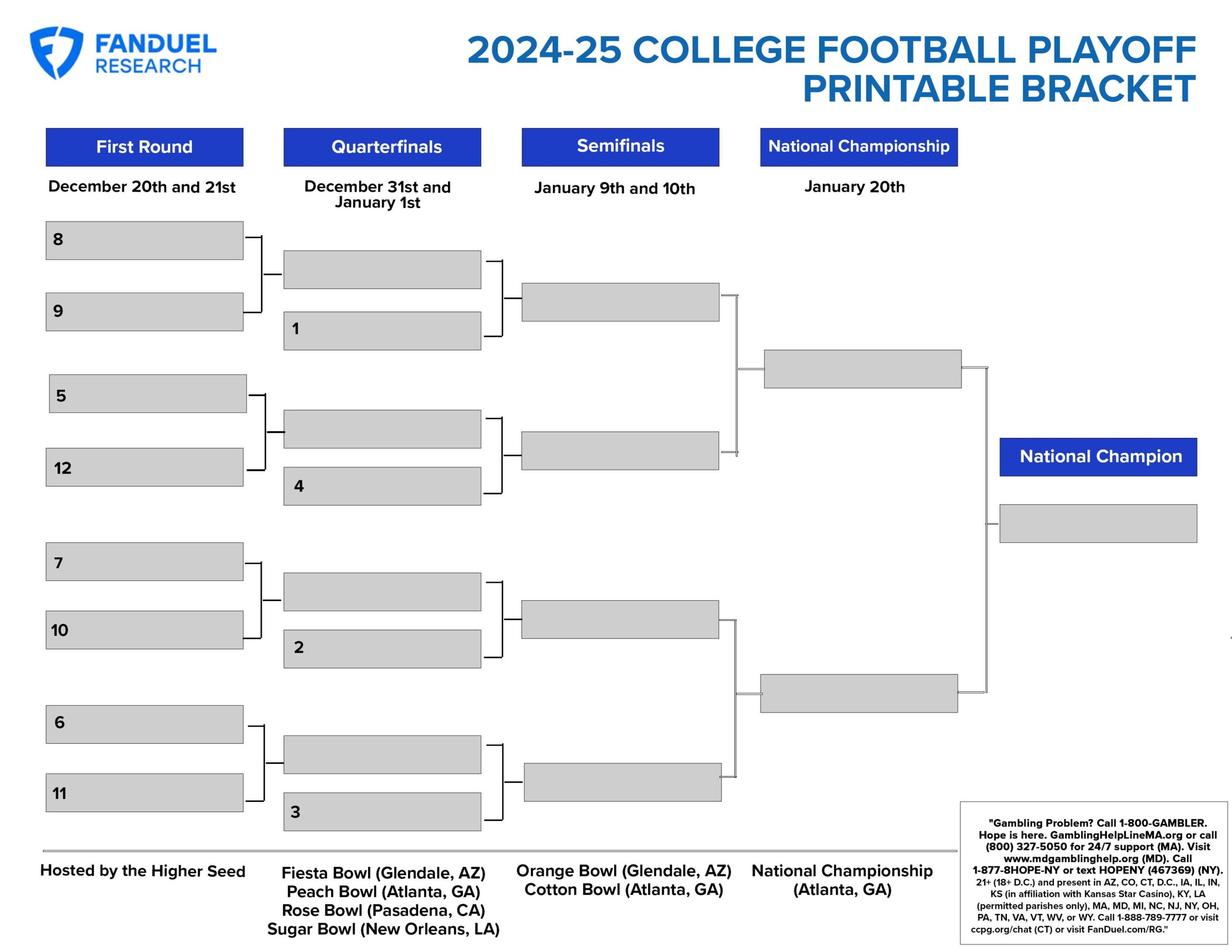 2024 25 College Football Playoff Blank Printable Bracket FanDuel Research