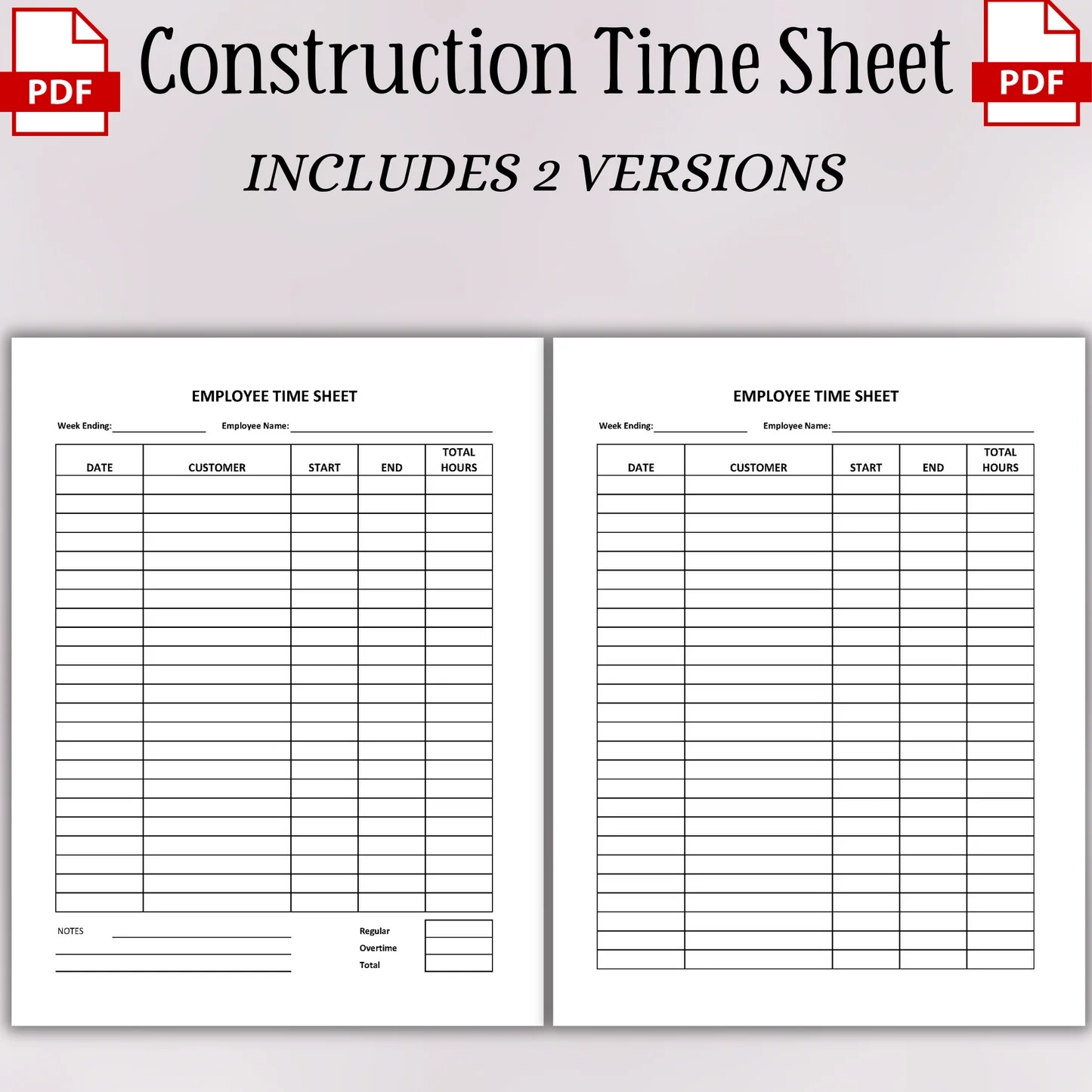 Construction Time Sheet Construction Timesheet Small Business Time Sheet Employee Time Sheet Timesheet Tracker Excel By Weekly Time Sheet Etsy