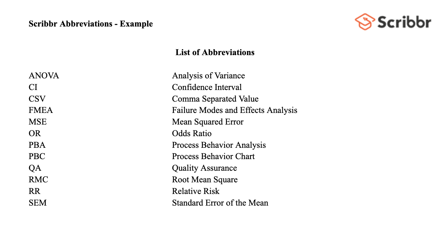 List Of Abbreviations Example Template amp Best Practices