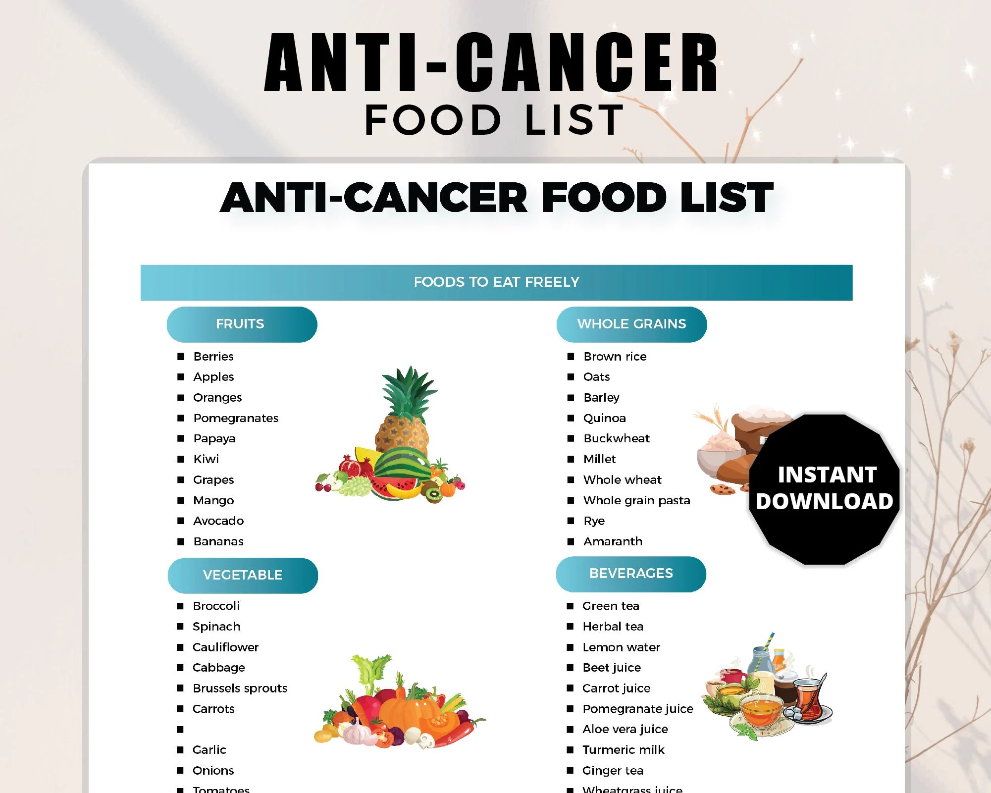 Anti cancer Food Guide Cancer fighting Foods Chart Cancer Prevention Diet PDF Immune Boosting Foods Anti Inflammatory Food Chart Etsy