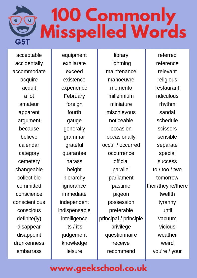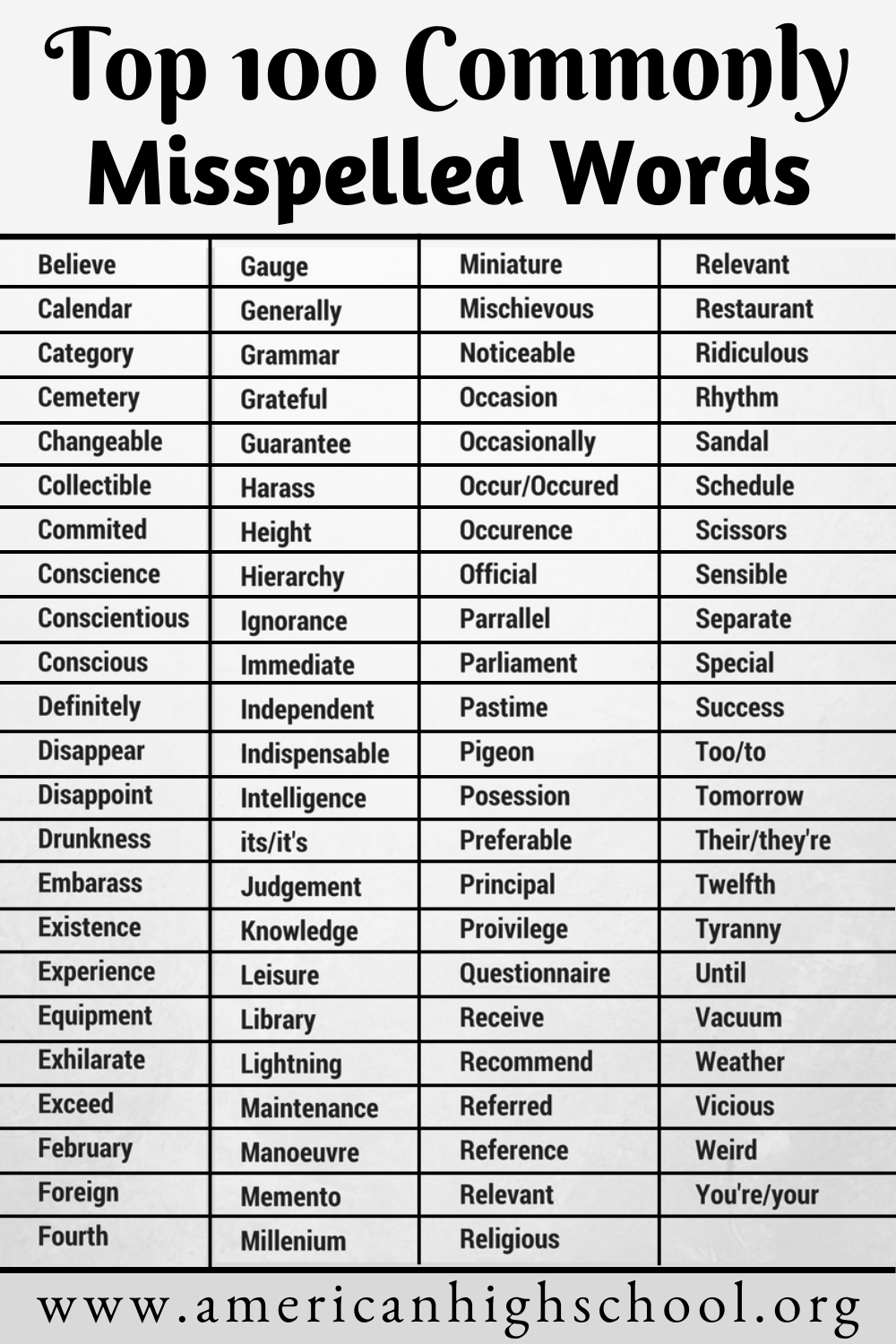 Next time you sit down to write an important email, essay, or report, having a printable list of commonly misspelled words by your side can be a game-changer. Take the time to familiarize yourself with these tricky words, and watch as your spelling skills improve and your confidence soars. Happy spelling!