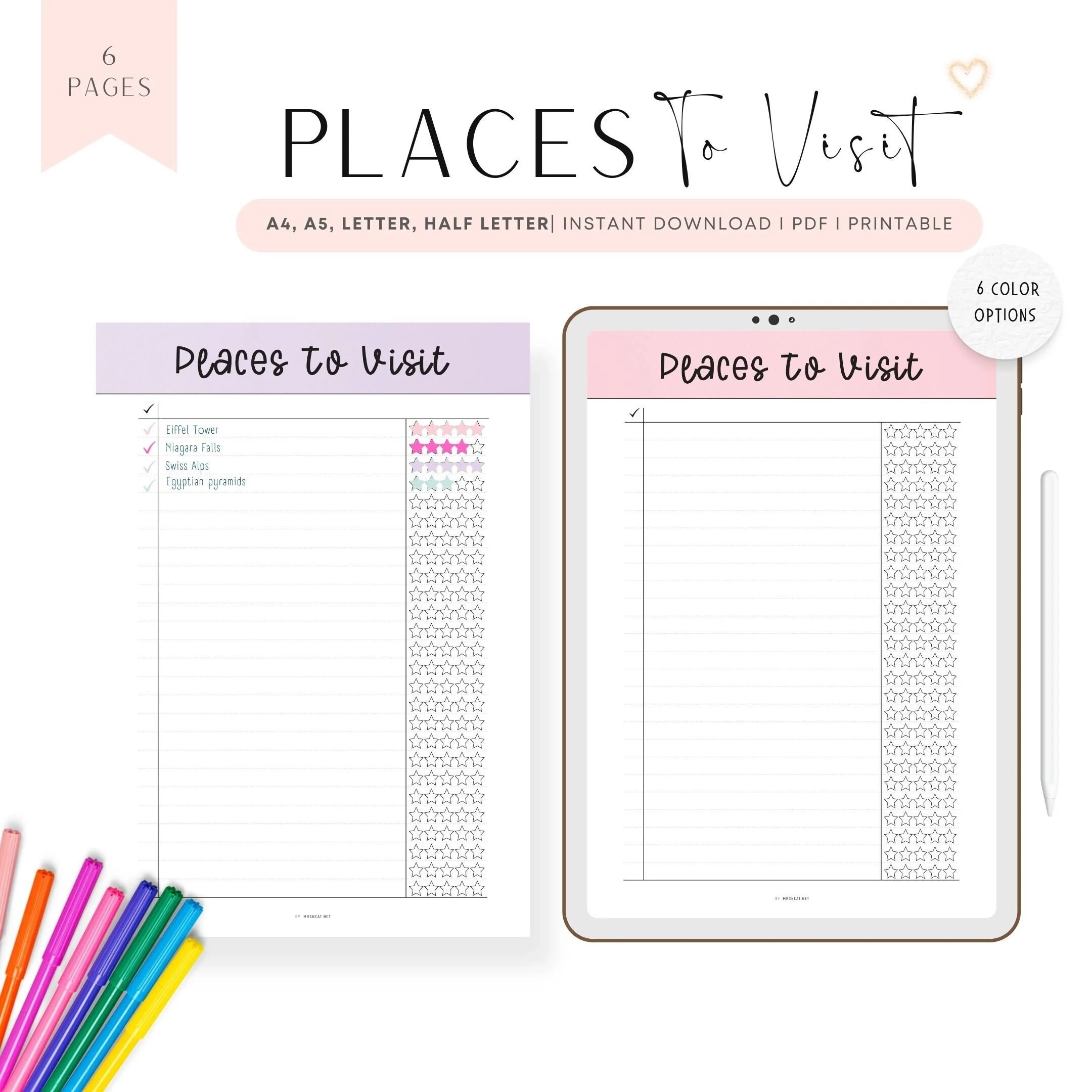 Places To Visit Vorlage Travel Tracker 6 Farben ausf llbares