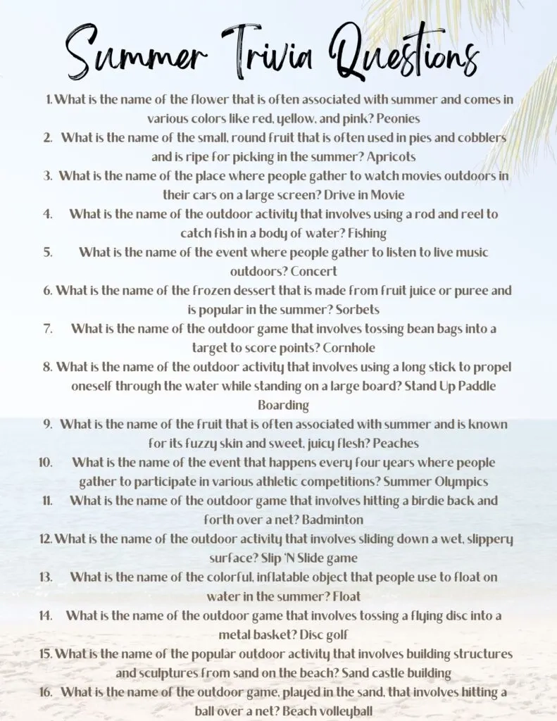 50 Fun Summer Trivia Questions For Kids With Free Printable