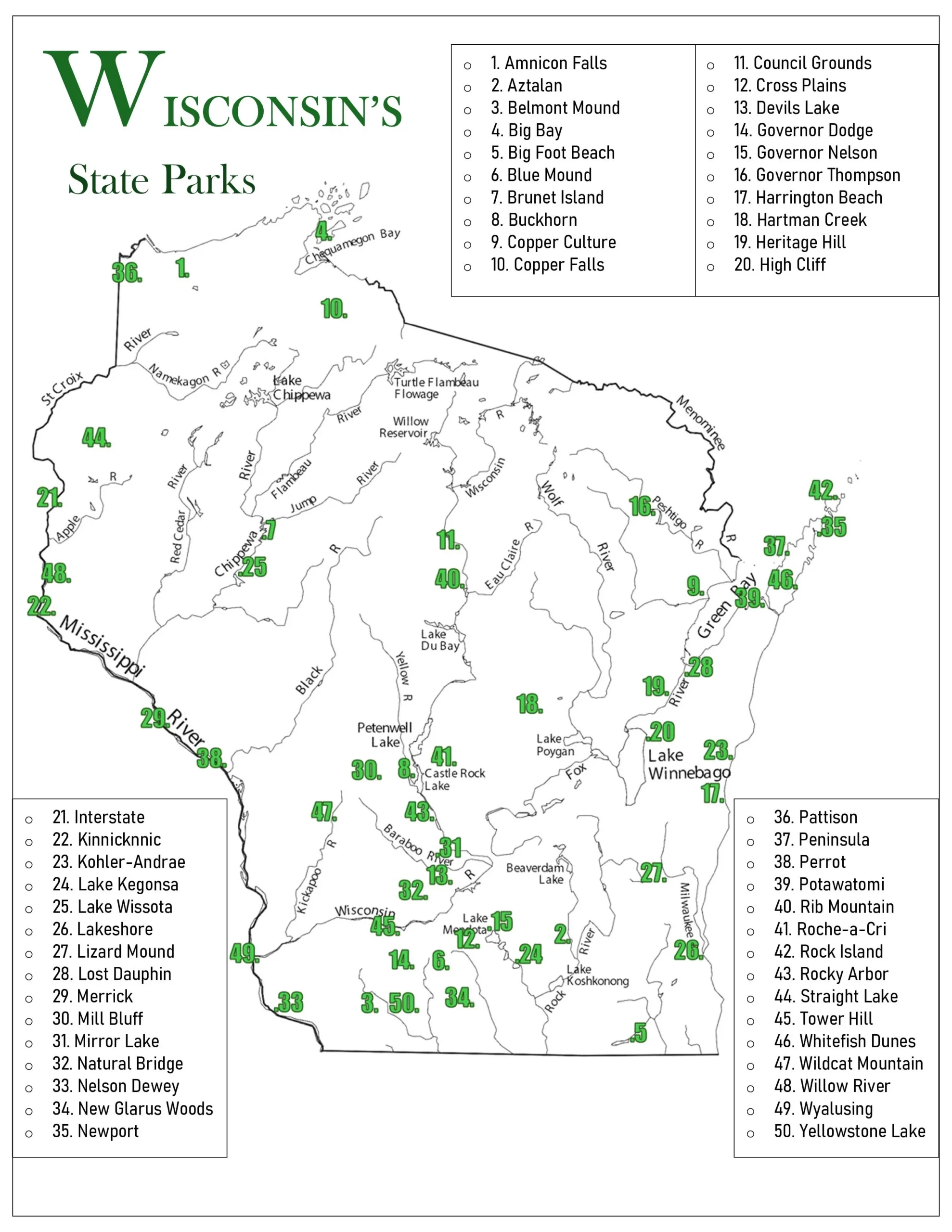 Printable List Of Wisconsins State Parks