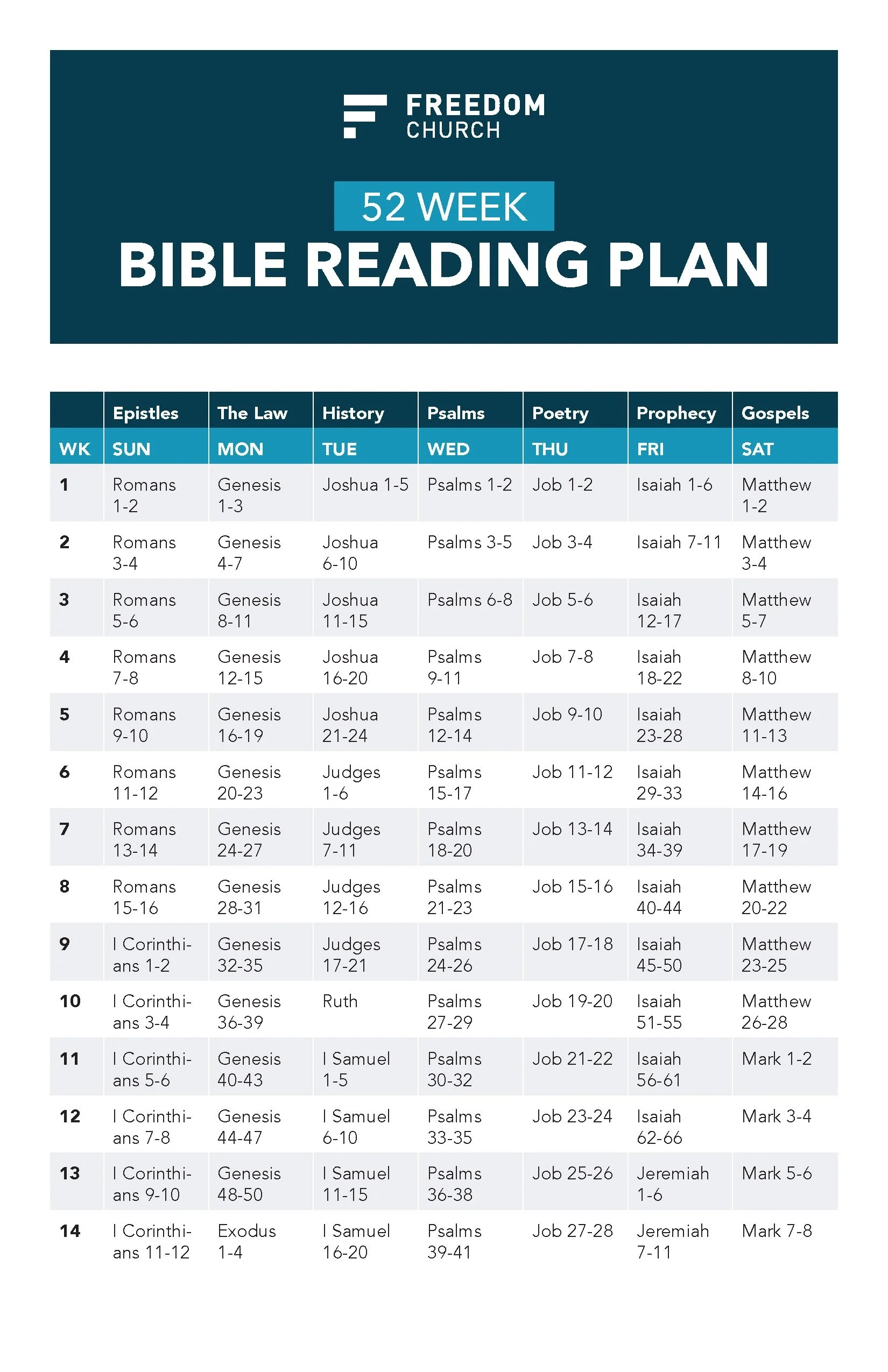 Bible Reading Plan 2025 Freedom Church