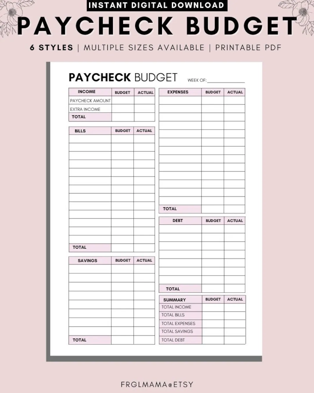 W chentliche Gehaltsabrechnung Budget Printable A4 A5 Letter PDF