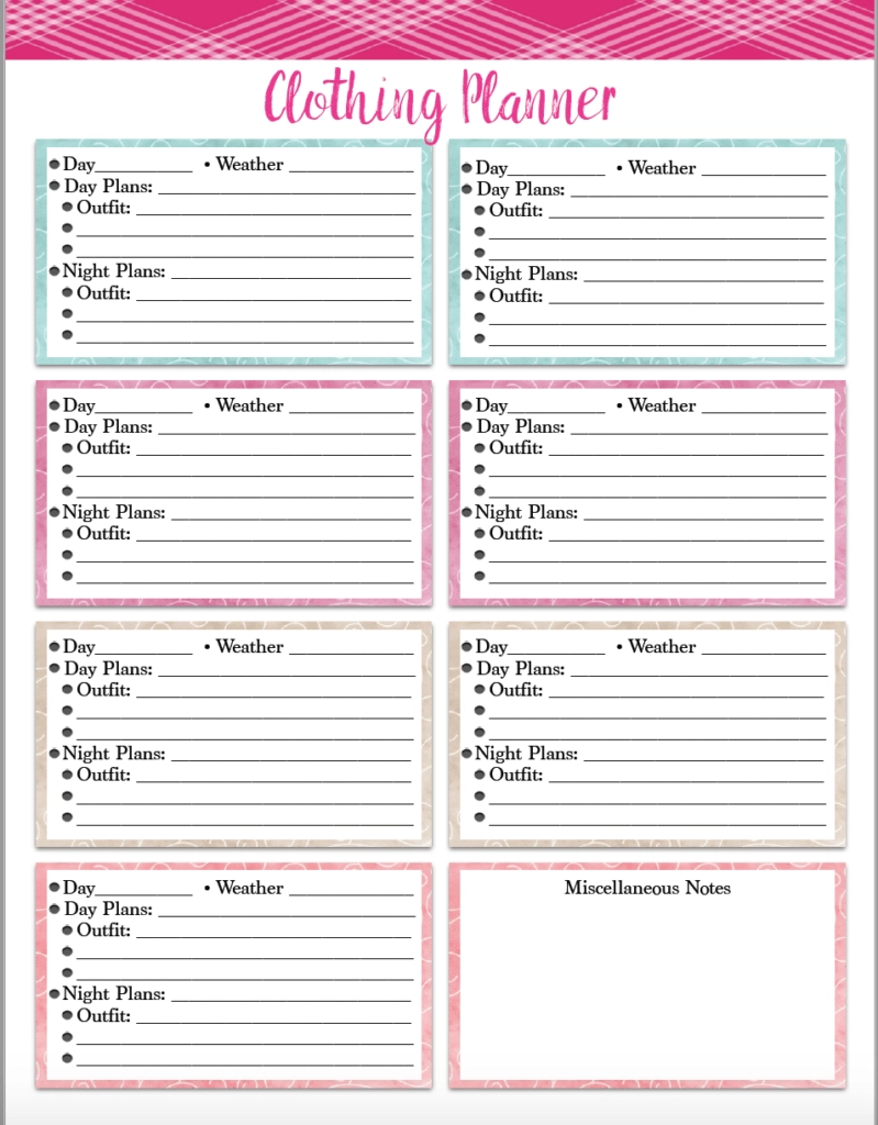 Free Printable Vacation Clothing Planner Day Night amp Travel