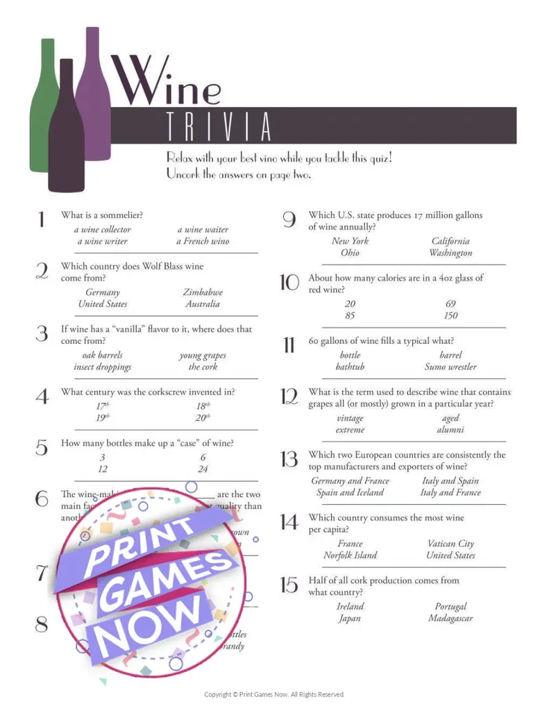 Wine Trivia Questions And Answers Printable