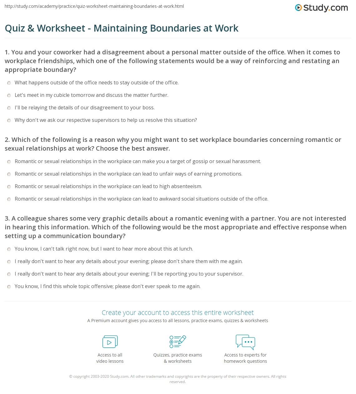 Quiz amp Worksheet Maintaining Boundaries At Work Study